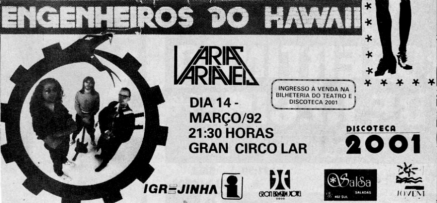Panfleto de divulgação do show dos Engenheiros do Hawaii em 1992